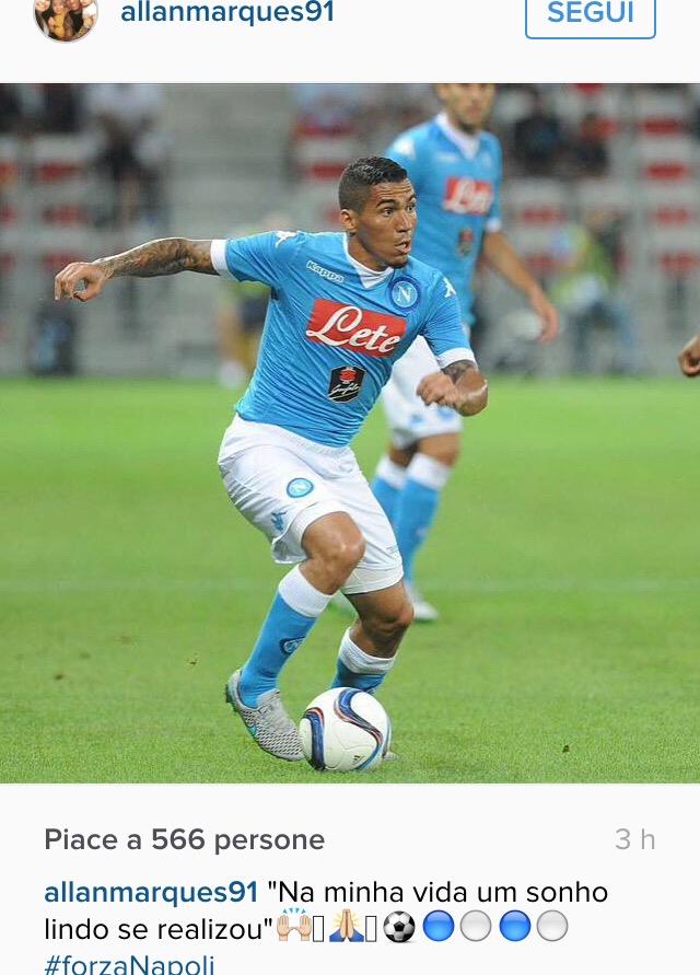 Allan manda un messaggio d’amore al Napoli dal suo profilo ufficiale Instagram, A circa due settimane dall’approdo in azzurro, il brasiliano sembra che si sia già innamorato della sua nuova maglia. Il suo commento è significativo: “Nella mia vita si è realizzato un bel sogno #ForzaNapoli”