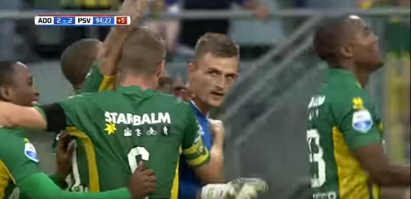 È il caso di Martin Hansen, portiere dell‘Ado Den Haag che al 95′ ha realizzato il gol del pareggio contro i campioni in carica del PSV. Basterebbe questo per fare notizia ma l’estremo difensore ha deciso di segnare il gol decisivo… di tacco.