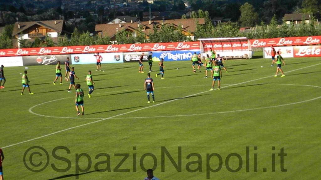 Come riporta il sito ufficiale dei partenopei, il gruppo ha iniziato la seduta con riscaldamento a squadre con possesso palla con le mani e successivamente palleggio in movimento con i piedi. Di seguito allenamento tecnico tattico e chiusura con partitina a campo ridotto. Domani allenamento pomeridiano.
