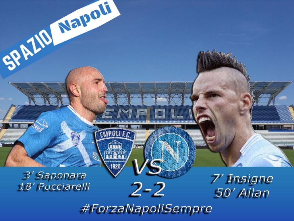 Tre anni per diventare come l’Empoli. La squadra toscana sembra ancora allenata da Sarri. Corsa, passaggi veloci e verticalizzazioni. Il Napoli che rientra in campo sembra almeno più volenteroso ed alla prima occasione utile pareggia i conti con Allan su imbeccata di Higuain. Il resto sembra un “vorrei ma non posso”, Valdifiori esce con i crampi e tra gli applausi, il voglioso Jorginho sente il profumo del posto da titolare.