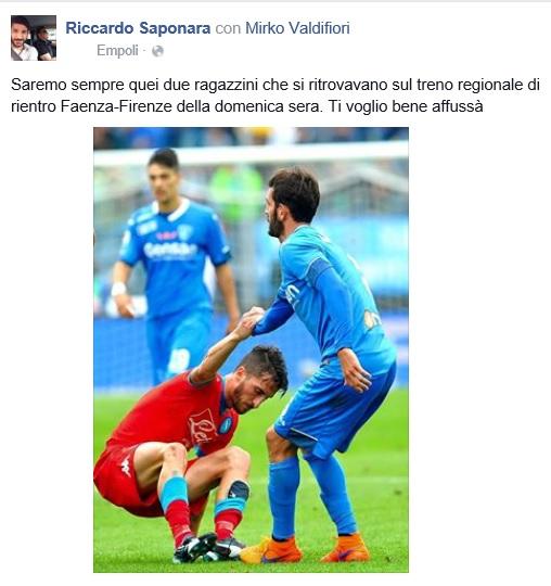 Il messaggio che non ti aspetti e che esula da un calcio moderno che spesso non ha tempo per sentimentalismi. Il talento dell’Empoli Riccardo Saponara scrive all’ex compagno di squadra Mirko Valdifiori, ieri per la prima volta avversario al “Castellani” dopo l’addio del regista e l’approdo al Napoli. bellissimo il messaggio scritto, che ci fa amare sempre di più questo splendido sport e tutti i suoi valori.