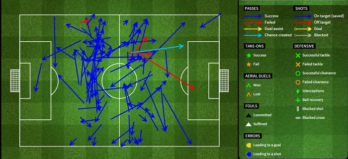 Il possesso palla è stato nettamente a favore degli azzurri (64,4%), ma è stata determinante soprattutto la precisione: 576 i passaggi completati.