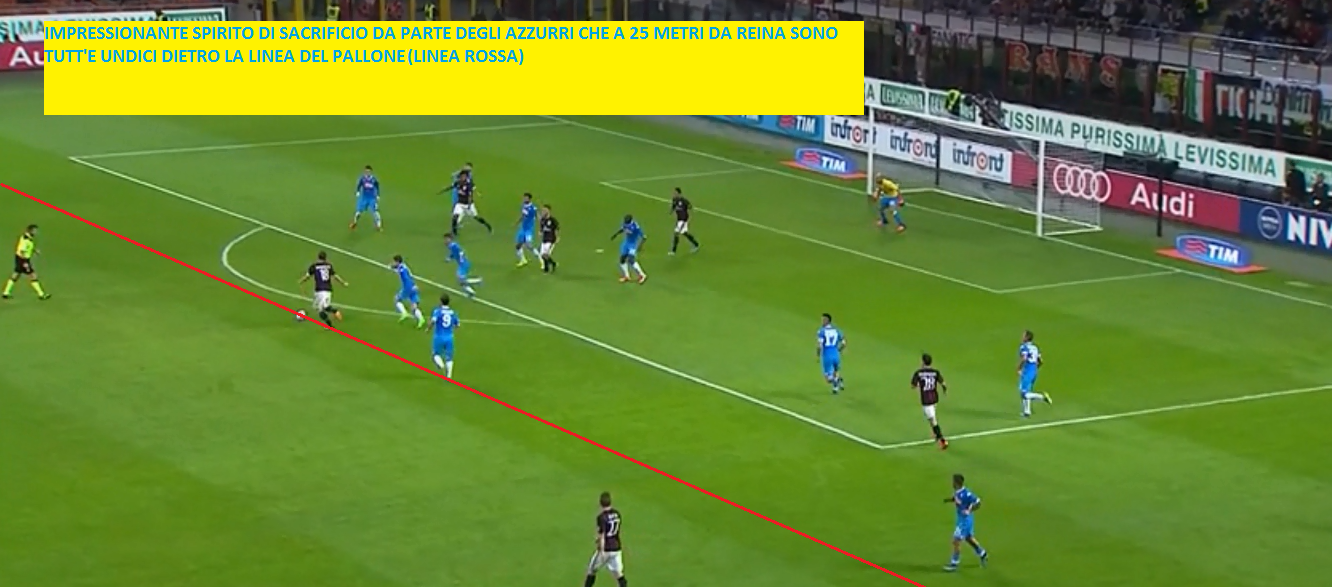 Anche a pochi metri da Reina, se occorreva, gli azzurri si disponevano in 11 dietro la linea della palla: