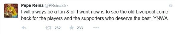Chi ama non dimentica, non solo a Napoli ma anche quando il passato è importante e le scelte sono sempre di cuore. E’ questo il caso di Pepe Reina che a Liverpool ci ha lasciato un pezzo della sua carriera e di vita e, da ex giocatore se non che tifoso, soffre a vedere in difficoltà lo storico club inglese.