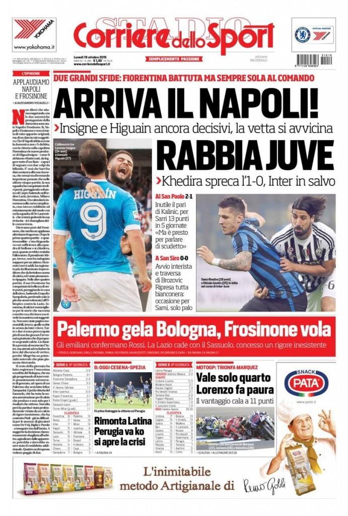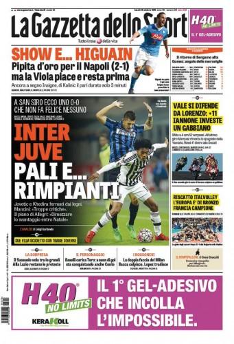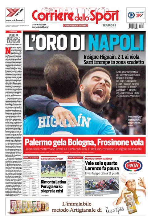 Il Napoli ruba la scena su tutte le prime pagine dei quotidiani sportivi. “L’oro di Napoli” titola l’edizione Campania del Corriere dello Sport, “Show e Higuain” la Gazzetta. Ecco tutte le foto (SCORRI IN ALTO).