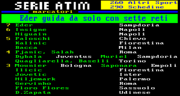Con la rete realizzata contro l’Hellas Verona nel sonoro 4-1 delle 12.30, Eder sale a quota sette reti realizzate, superando così sia Insigne sia Higuain, impegnati questa sera alle 20.45 nel match dal Bentegodi contro il Chievo Verona.