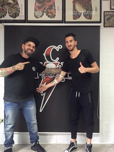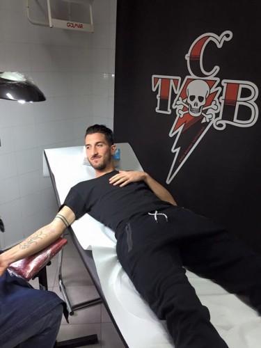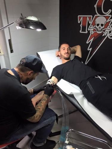 Primo tattoo partenopeo per il centrocampista azzurro Mirko Valdifiori. In alto gli scatti che ritraggono l’ex Empoli (dalla pagina Facebook Enzo Brandi Tattoing).