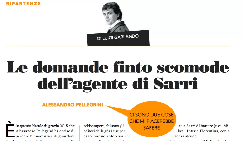 “Ci sono due cose che mi piacerebbe sapere, chi sono gli editori della gds e se per caso hanno interessi in squadre di calcio…”: qualche giorno fa, questo tweet di Alessandro Pellegrini, avvocato che cura gli interessi di Maurizio Sarri, sembrava passato inosservato. E invece, dalle colonne di SportWeek – settimanale della Gazzetta dello Sport – è arrivata la risposta da parte del giornalista Luigi Garlando. Questo uno stralcio del suo editoriale: