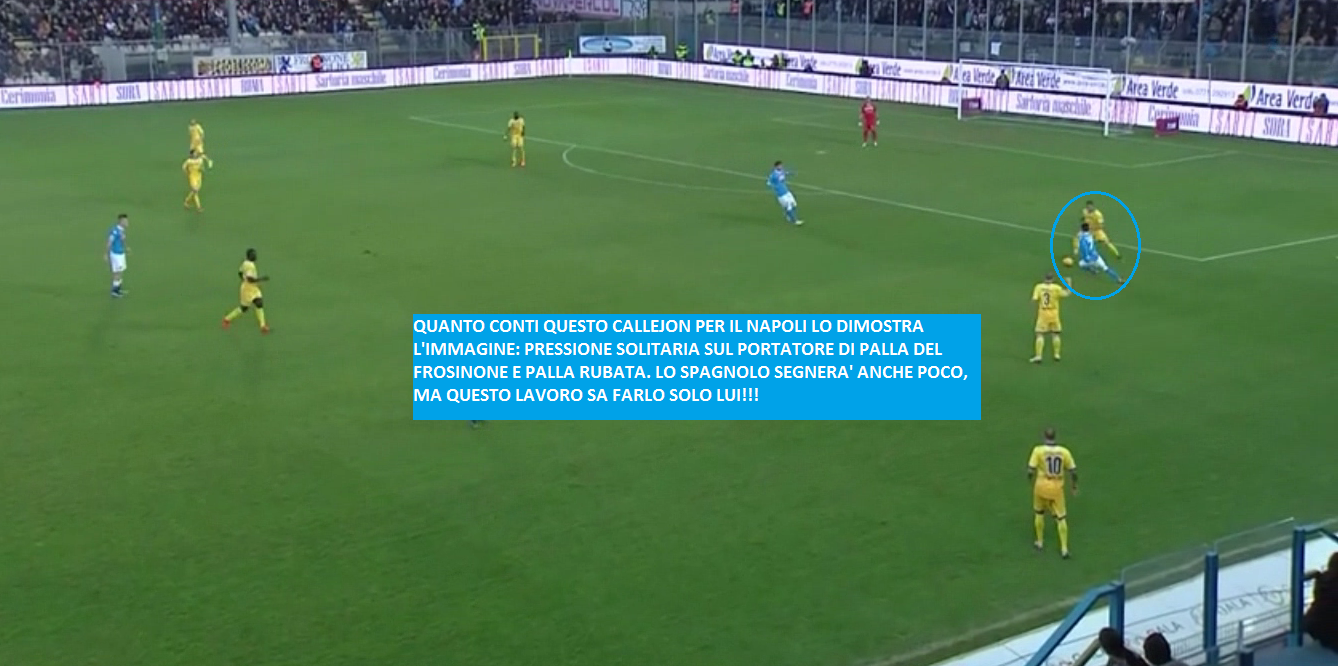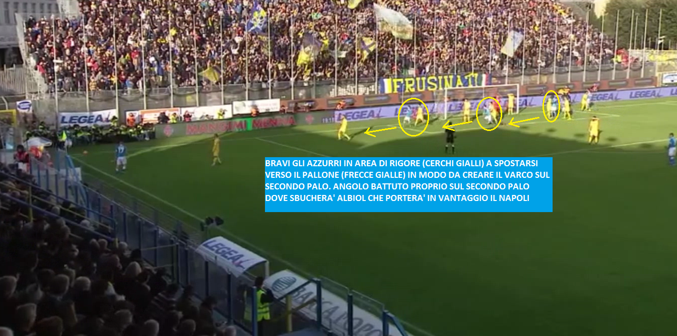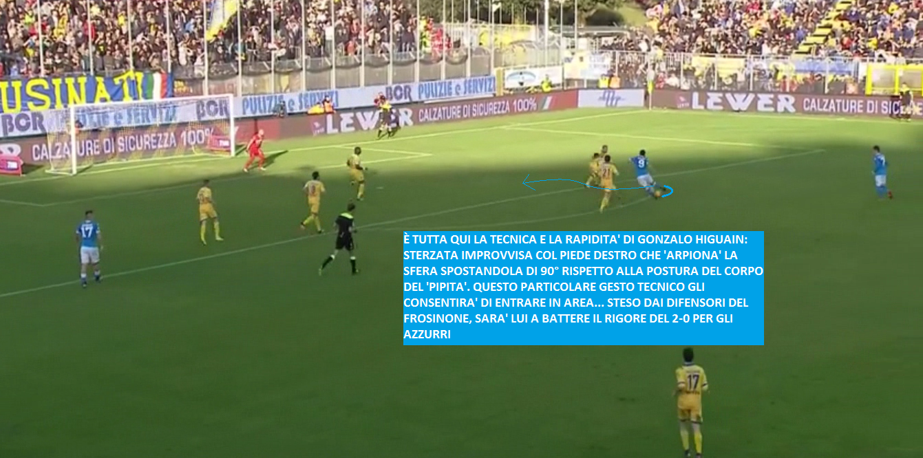 Un dominio assoluto e una vittoria schiacciante degli azzurri contro il Frosinone di Roberto Stellone. Prestazione immensa, forse la migliore da quando in panchina siede Maurizio Sarri. Per tutti i novanta minuti gli azzurri non sbagliano nulla: precisione chirurgica in ogni passaggio; trame costruite con movimenti studiati e ri-studiati; qualità immense dei singoli, sia tecnicamente che tatticamente; compattezza dei reparti nelle tre fasi di gioco. E poi tanti, tantissimi goal: 38 per la precisioni, di cui 18 messi a segno dal solo Higuain. Vittoria di maturità, ottenuta col gioco e con l’attenzione. Vittoria che vale il titolo di campione d’inverno. Insomma, tutto perfetto. Giornata perfetta.
