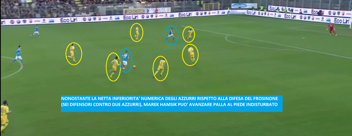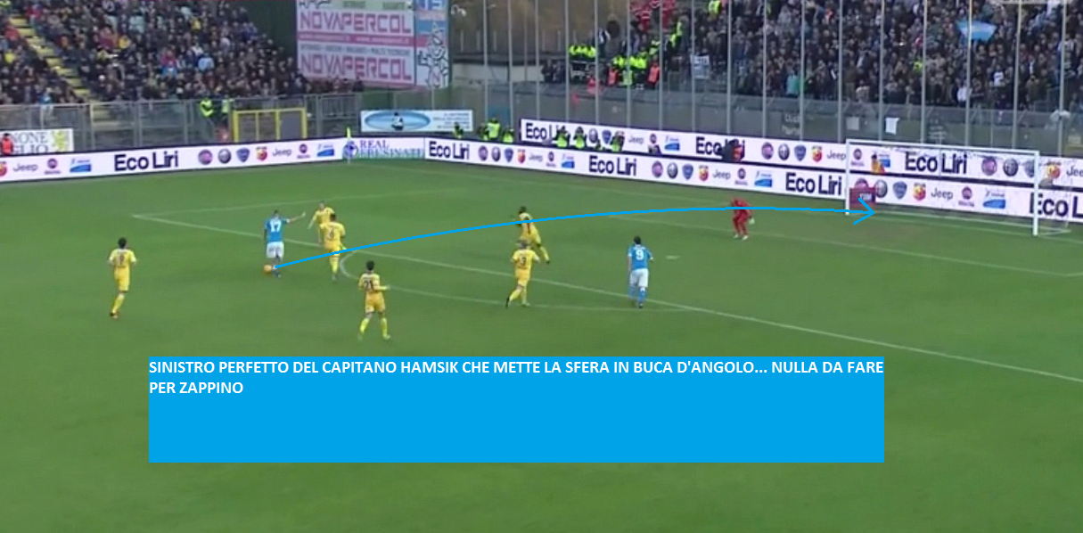 IL TERZO GOAL DEI PARTENOPEI – Nella ripresa stesso copione dei primi quarantacinque minuti: Napoli assoluto dominatore della partita, padroni di casa in balìa degli azzurri. Gli uomini di Sarri trovano la rete del 3-0 al 58′ con Marek Hamsik che si lancia in un’azione solitaria, non trovando l’opposizione di nessun calciatore ‘ciociaro’: