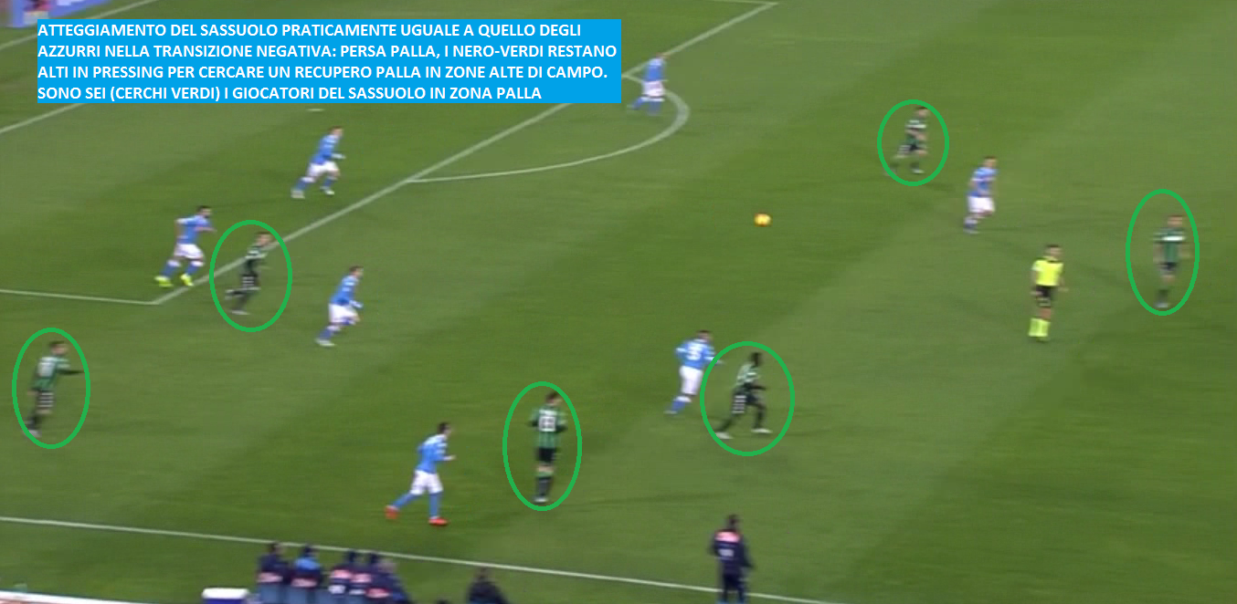 Uno spot per il calcio: questa è la sintesi perfetta di Napoli-Sassuolo! Una sfida che lascia in regalo un’infinità di spunti di analisi. Due allenatori, e, di conseguenza, due squadre dalle mille idee, che in campo si divertono e divertono. Alla faccia di chi pensa che il calcio debba essere sofferenza, cinismo, aggressività fisica. Napoli e Sassuolo riescono a sviluppare diversi tipi di gioco in un’unica gara, e l’unica aggressività che riescono ad attuare è quella mentale (che porta poi anche a quella fisica). Questa resterà probabilmente la gara più bella dell’intero campionato. Velocità di manovra, transizioni positive e negative immediate, possesso palla mai banale, continua ricerca delle linee di passaggio, movimenti individuali ripetuti e ripetuti e ripetuti. Studio dell’avversario fino alla nausea. Quasi mai la palla lunga alla ricerca della fortuna. Quasi sempre l’azione nasce dalle fonti di gioco basse. Potremmo continuare per ore nel mettere a fuoco i vari spunti. La verità è che Napoli e Sassuolo sono due grandi squadre, e Sarri e Di Francesco due grandissimi allenatori, istruttori di calcio, maestri.