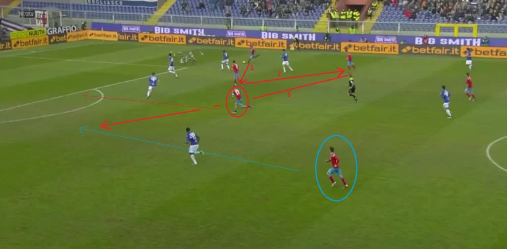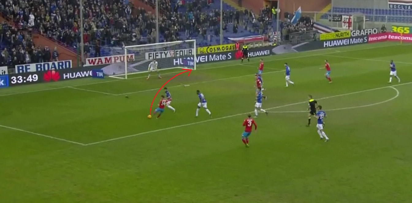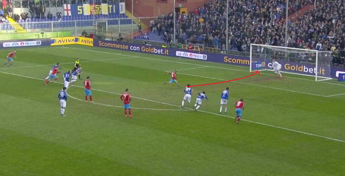Gli azzurri sono bravi nel non lasciare mai la possibilità ai doriani di ragionare e di poter così eludere il pressing azzurro. Ed è proprio grazie a questo atteggiamento che si arriva all’errore di Barreto, pressato in modo perfetto da Hamsik: