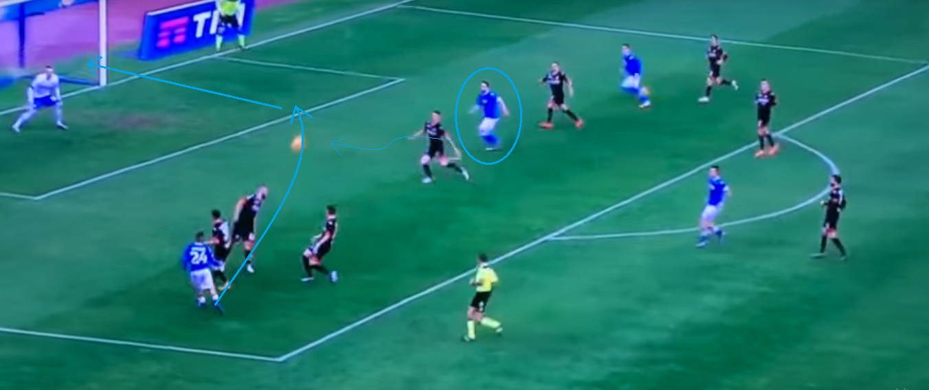 DOPPIO VANTAGGIO PER GLI AZZURRI – Come detto in precedenza, quando due squadre tanto simili si affrontano, a fare la differenza non possono che essere i dettagli. E in questo caso, tra Napoli ed Empoli un dettaglio di grandissima importanza è stato sicuramente il poter sfruttare l’ampiezza da parte degli azzurri. Il goal del 3-1 è la sintesi perfetta di questa interpretazione da parte del Napoli: