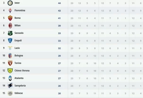 Ecco la classifica completa: