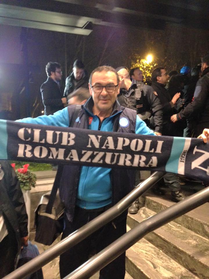 FOTO – Maurizio Sarri con la sciarpa del Club Napoli Romazzurra