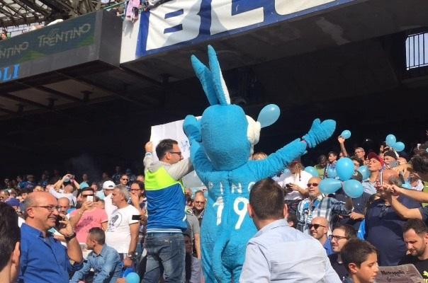 Una domenica davvero speciale per il Napoli e Pino la Mascotte, l’asinello a grandezza naturale che da tempo ormai segue le sorti di Higuain e compagni al “San Paolo”, portando una ventata di allegria e tantissima fortuna. Ogni volta che Pino è allo stadio infatti, gli azzurri vincono sempre, per una scaramanzia he si rinnova ormai da mesi. Ma non solo: porta con sé spensieratezza e passione tra grandi e piccini, in un’atmosfera davvero splendida che riconcilia con i veri e bellissimi valori del calcio.