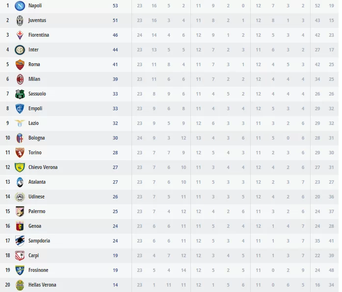 LA CLASSIFICA: