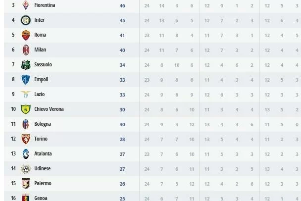 Non cambia in vetta la classifica di serie A dopo l’ultima giornata: corrono ad altissimi livelli Napoli e Juventus, con due vittorie rispettivamente contro Carpi di misura e Frosinone per i bianconeri, con un ricco 0-2.