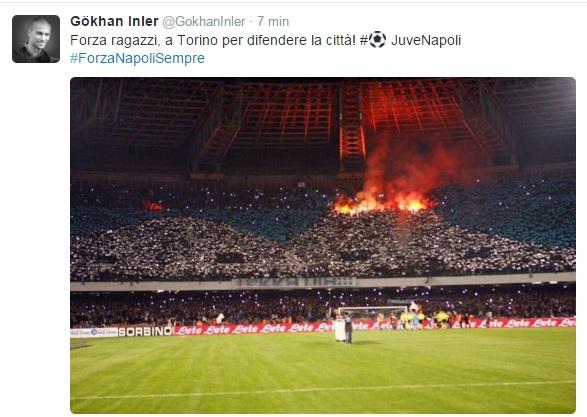 Continua a salire la febbre per il big match tra Juventus e Napoli. In tanti si stanno schierando a favore di una delle due compagini, e a farlo è stato anche l’ex centrocampista azzurro Gokhan Inler che ha voluto mandare un bellissimo messaggio d’incitamento su Twitter:
