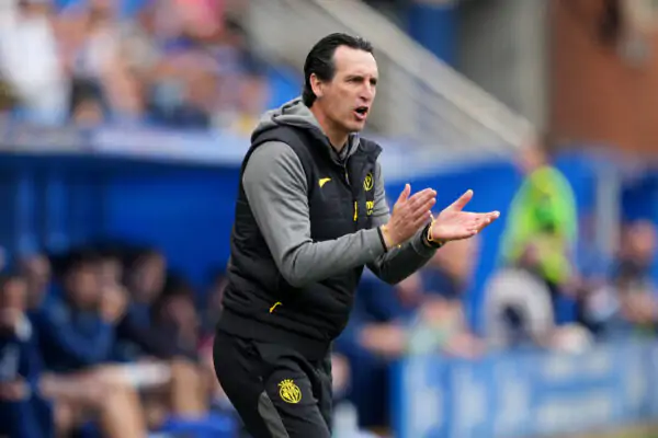 VITORIA-GASTEIZ, SPAIN - APRIL 30: Unai Emery, Head Coach of Villarreal CF gives their team instructions during the LaLiga Santander match between Deportivo Alaves and Villarreal CF at Estadio de Mendizorroza on April 30, 2022 in Vitoria-Gasteiz, Spain. (Photo by Juan Manuel Serrano Arce/Getty Images)