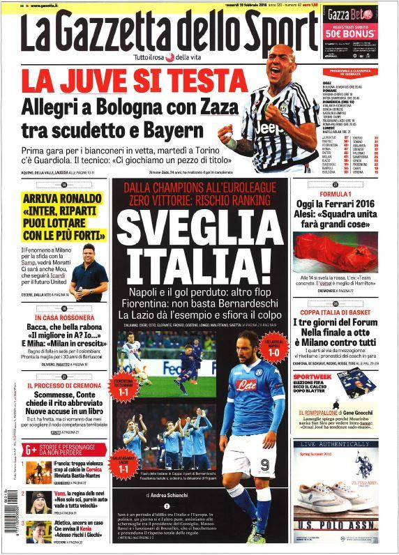 GALLERY – Le prime pagine dei principali quotidiani: “Sveglia Italia!”, Bacca: “Io più forte di Higuain”