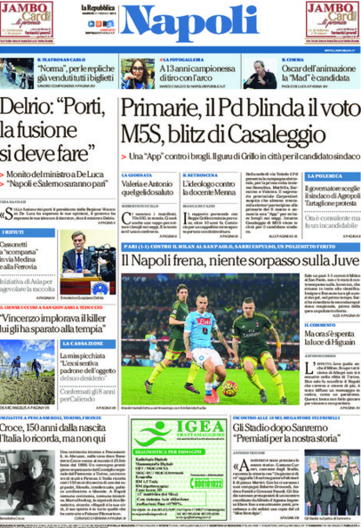 Ecco le prime pagine dei principali quotidiani. Si parte dalla Gazzetta dello Sport che esalta la prestazione di carattere del Milan e sottolinea il terzo stop consecutivo del Napoli, mentre il Corriere dello Sport titola: “il Napoli non molla”. A seguire anche Repubblica e Tuttosport.