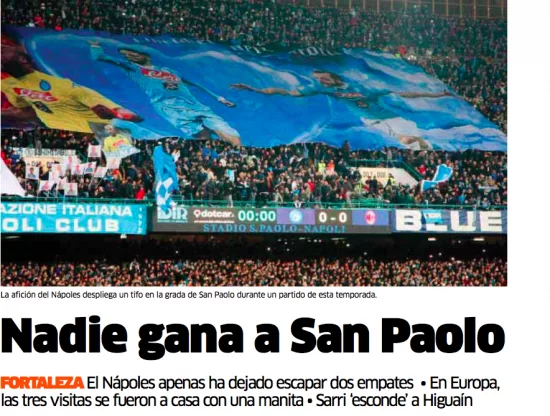 Ecco il titolo del quotidiano spagnolo (trad. “Nessuno batte il San Paolo”):
