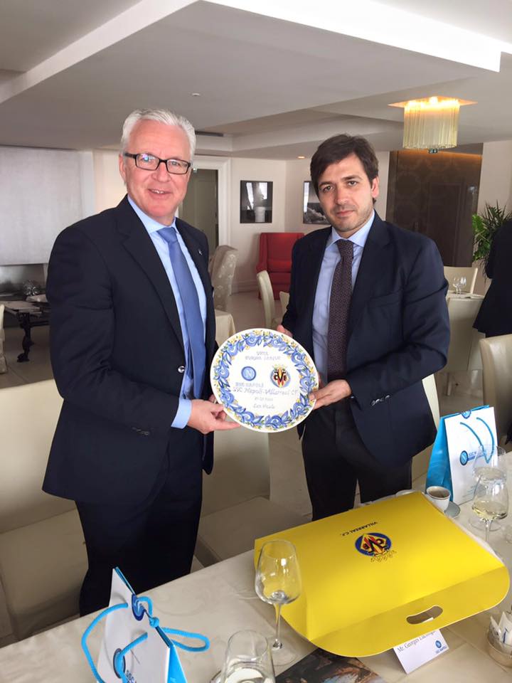 Pranzo cordiale tra i dirigenti del Napoli e quelli del Villarreal. Era presente anche Aurelio De Laurentiis, che si è reso anche protagonista di uno scambio di regali con il presidente del submarino amarillo. Ecco le foto postate dalla pagina facebook del Villarreal: