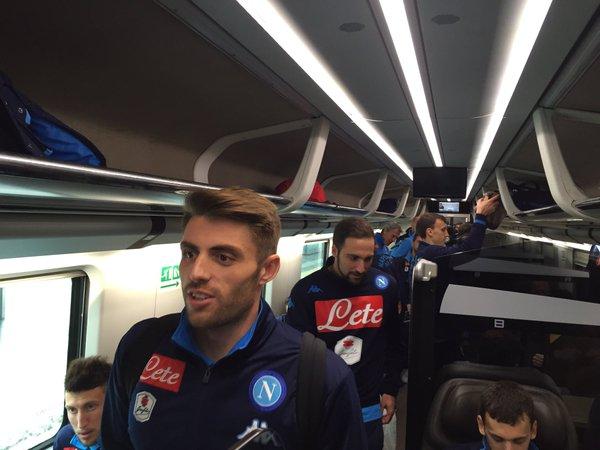 Il Napoli è partito con treno Frecciarossa dalla stazione di Piazza Garibaldi per la trasferta di Firenze. Ecco le immagini dal profilo Twitter degli azzurri (SCORRI IN ALTO LE FOTO).