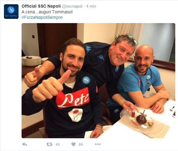 “A cena…auguri Tommaso! #ForzaNapoliSempre“, questo il tweet pubblicato dal Napoli.
