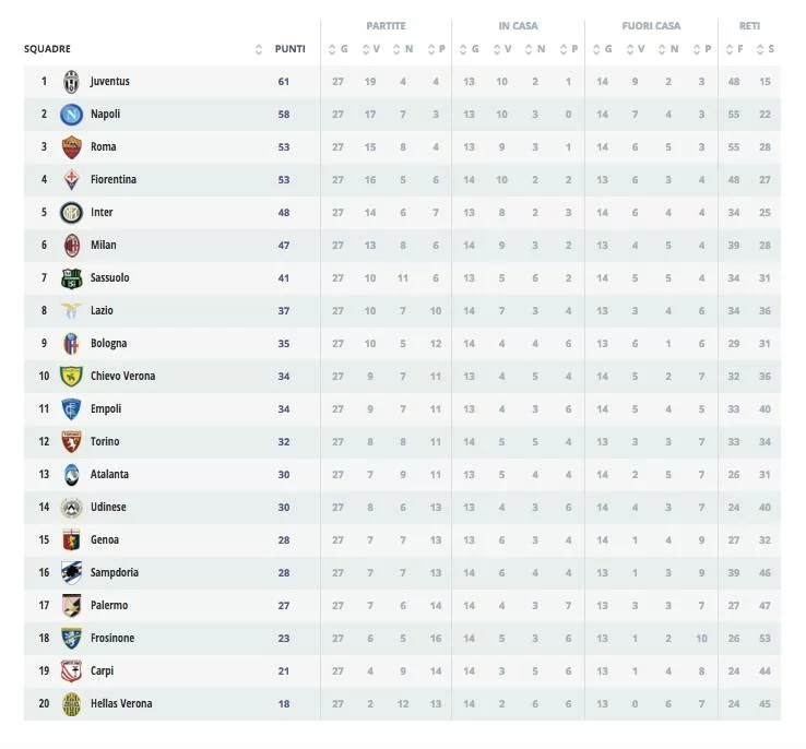 Match intenso al Franchi, deciso in poco meno di due minuti: prima Marcos Alonso, poi Gonzalo Higuain e la partita si conclude in parità. Classifica che dunque si muove, ma di poco: viola a pari punti con la Roma, loro prossima rivale; Napoli invece a meno tre dalla Juventus capolista, vittoriosa ieri sera contro l’Inter per 2-0.