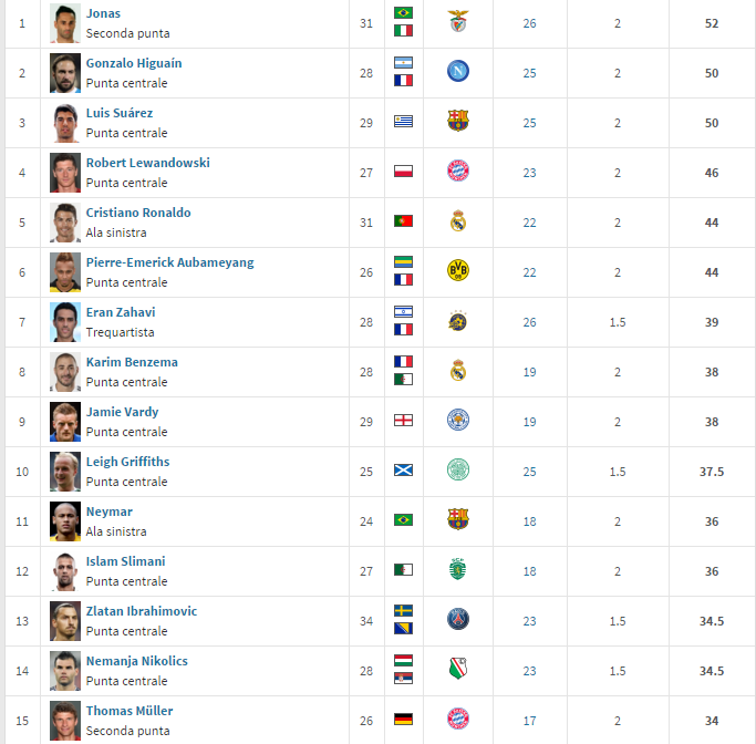 Gonzalo Higuain, oltre a comandare la classifica dei marcatori in Serie A, è in alto anche in Europa. Infatti, la Scarpa d’Oro comincia ad essere obiettivo concreto per il Pipita, ora a venticinque reti, alla pari di un altro grandissimo centravanti come Luis Suarez, rimasto a secco nella vittoria del Barcellona sul Siviglia. Sopra i due talenti sudamericani c’è Jonas del Benfica, a 26 reti.