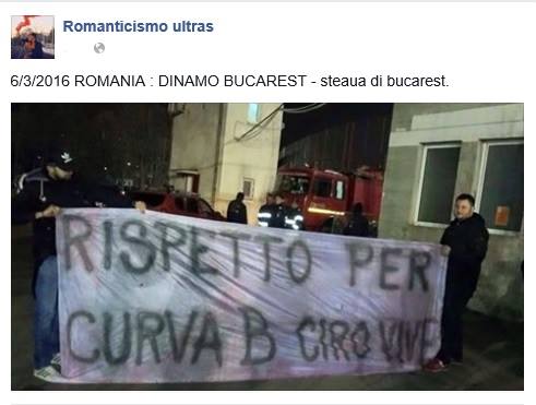 Continuano gli attestati di stima e rispetto per i tifosi del Napoli da parte delle tifoserie di club di tutta Europa. Dopo la sfida tra Dinamo Bucarest e Steaua Bucarest, è stato esposto uno striscione indirizzato alla Curva B e in onore di Ciro Esposito.