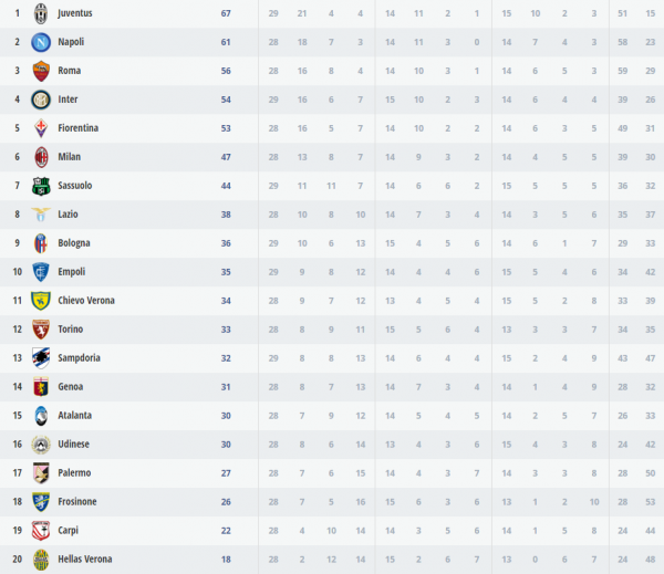 Ultim'ora sul Calcio Napoli, le news FOTO – Serie A, l’Inter vince con il Bologna e va momentaneamente a -7 dal Napoli 12 Mar 2016 - 22:46 di redazione L’Inter vince in casa 2-1 contro il Bologna, supera momentaneamente la Fiorentina e si piazza al quarto posto a 54 punti, -7 dal Napoli. In rete Perisic, D’Ambrosio e Brienza. La classifica: RredazioneRedazione SpazioNapoli