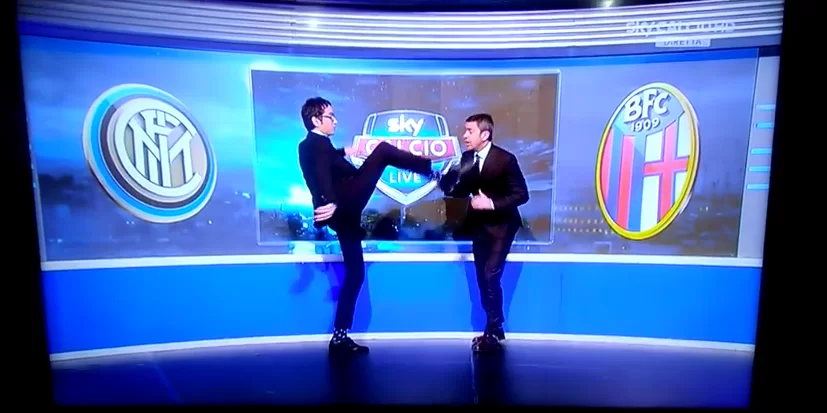 Che gaffe su Sky Sport: il conduttore Marco Cattaneo mima la moviola di Inter-Bologna e involontariamente colpisce con un calcio in faccia Alessandro Costacurta. Il risultato? Una scena molto esilarante…