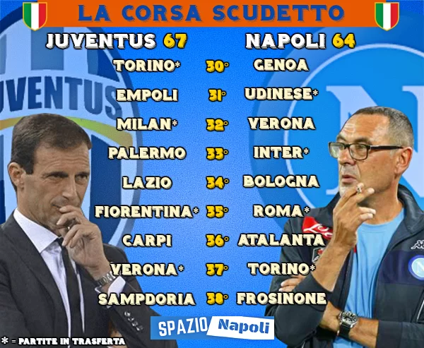 QUESTO IL CALENDARIO DI JUVENTUS E NAPOLI FINO AL TERMINE DEL CAMPIONATO:
