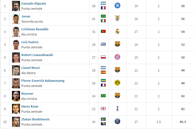 Dopo la doppietta con il Genoa, l’argentino è primo insieme a Jonas (in gol al 93′ con il suo Benfica) nella classifica della Scarpa d’oro 2015-16. In serata trova la gioia anche Cristiano Ronaldo, subito dietro a quota 28.