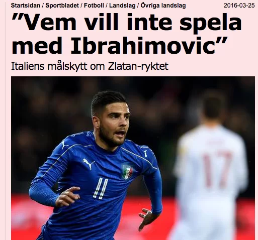 Intervistato dal portale svedese Aftonbladet, Insigne ha detto: “Chi non vorrebbe giocare con Ibrahimovic? Lui è un grande, grande attaccante. Ma abbiamo Gonzalo e intendiamo tenerlo”.