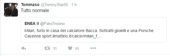 “Tutto normale” recita il suo post. Evidente come l’intento del magazziniere azzurro sia quello di sottolineare come una notizia del genere non venga enfatizzata dai media, che invece non si fanno scrupoli quando la stessa cosa succede a Napoli.