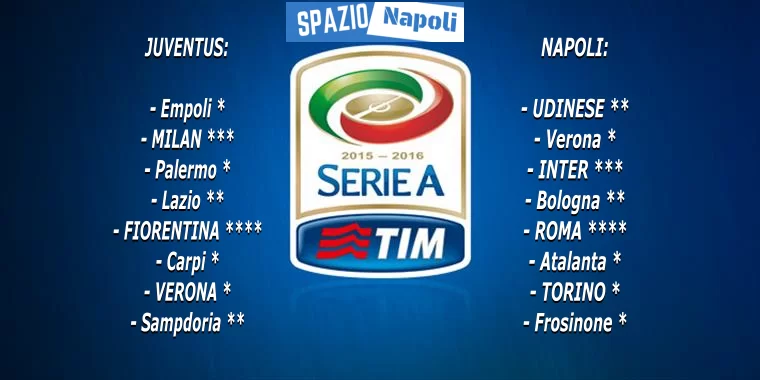 IL CALENDARIO – Tre sono gli scontri degni di nota. Alla trentunesima giornata, infatti, la Juventus andrà in trasferta al Meazza contro il Milan. Sfida non facile per i bianconeri in quello che può considerarsi un anticipo della finale di Coppa Italia. Il Napoli, invece, affronterà in casa il modesto Verona, sempre più avviato verso la retrocessione. La settimana dopo potrebbe approfittarne la squadra di Allegri, impegnata allo Stadium con il Palermo, mentre gli uomini di Sarri dovranno vedersela con un Inter decisamente più pericolosa rispetto a qualche partita fa.