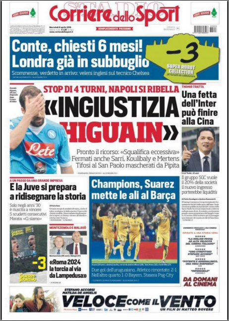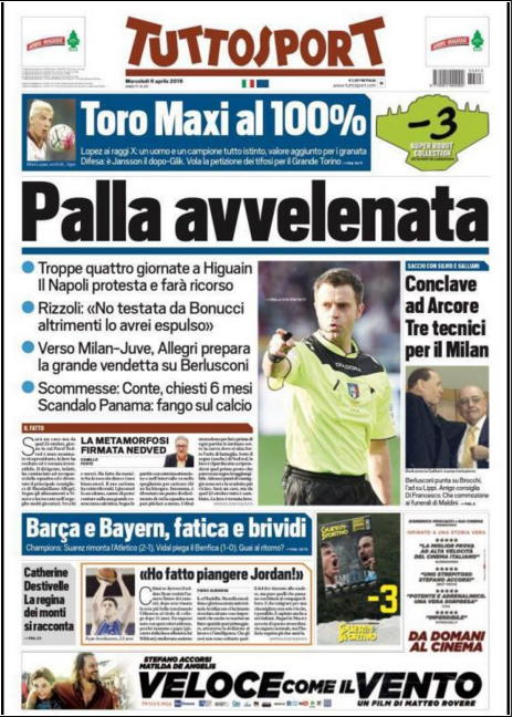 GALLERY – Le prime pagine dei principali quotidiani: “ingiustizia Higuain”