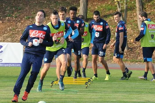 Allenamento pomeridiano il Napoli a Castel Volturno. Gli azzurri preparano il match con il Verona al San Paolo per la trentaduesima giornata di Serie A.