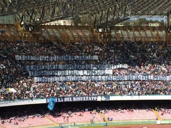 Una giornata ricca di polemiche e contestazioni quella vissuta al “San Paolo”, e alcune di queste non sono passate inosservate. Durante la partita tra Napoli e Verona infatti è apparso in Curva B uno striscione estremamente polemico nei confronti del sistema calcio in generale e, forse, indirizzato anche alla Juventus indirettamente.