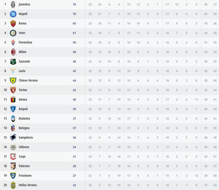 La classifica: