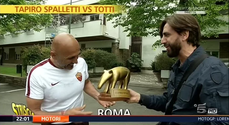 La trasmissione Striscia la Notizia, in onda su Canale 5, ha consegnato il classico Tapiro d’Oro a due dei protagonisti della domenica di Serie A appena trascorsa; ovvero Francesco Totti e Luciano Spalletti rei di essersi detti qualche parolina di troppa nel post gara di Atalanta-Roma.