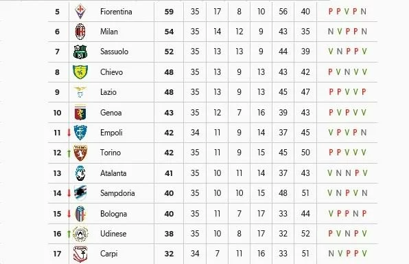 Ecco la nuova classifica aggiornata a tre giornate dal termine della stagione.