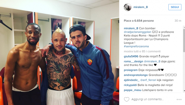 “Con Bomber Nainggolan e professor Keita! Tre punti importantissimi per la Champions!”. C’è soddisfazione, insomma, in casa Roma, per la vittoria ai danni degli azzurri. Di seguito la foto: