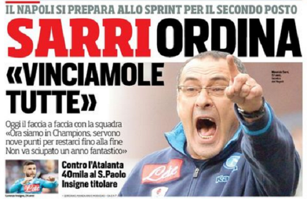 La lotta per gli ultimi due posti validi per la Champions League terrà banco per le restanti tre giornate di campionato. Il Napoli, nonostante la sconfitta di Roma, mantiene un vantaggio di due punti proprio sui giallorossi. La Roma, d’altro canto, vuole sfruttare l’ondata di ottimismo dovuta al successo in casa contro i partenopei. La Juventus invece continua i suoi festeggiamenti per il quinto tricolore consecutivo. Queste le prime pagine: