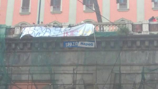 Pronta la risposta dei tifosi napoletani, che all’ingresso della Galleria Vittoria in Via Acton hanno esposto uno striscione con scritto “Curva Sud infame”.
