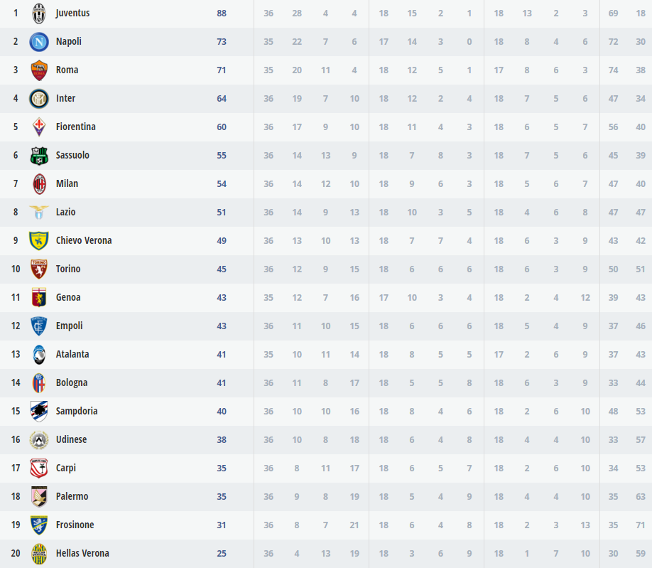 L’Inter perde all’Olimpico con la Lazio e dice addio al terzo posto. La Roma, infatti, è irraggiungibile a sette punti di distanza. Decisive le reti di Klose e Candreva su rigore. La sconfitta dei nerazzurri dà dunque la matematica certezza al Napoli e alla Roma di qualificarsi in Champions. Resta da stabilire soltanto quale squadra accederà direttamente ai gironi e chi ai preliminari della massima competizione europea.